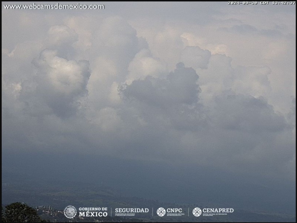Cloudy sky, with no visibility towards the volcano area, making it difficult to observe in the event of an exhalation of water vapor, gas and/or ash, (Image 1, webcam network). Manzanillo Colima radiosonde, 06:00 am local time, September 30, 2024: At 5000 m: East wind of 14 km/h. Between 5000 and 7000 m: East wind of 21 km/h. Above 7000 m: East-northeast wind of 16 km/h.